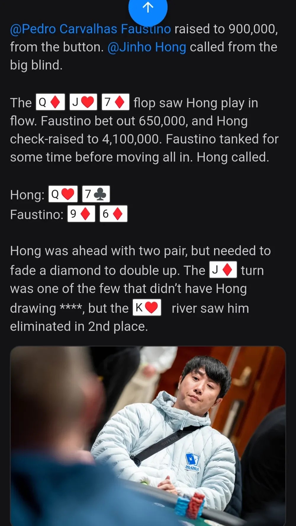 humor SPORTS SOS | 홍진호 포커대회 2등 (필독) 👤 작성자: SOS관리자 📅 날짜: 2026-04-08 02:31 👁️ 조회수: 788 상금 2억 5천 6백만원 참가비 약 300만원