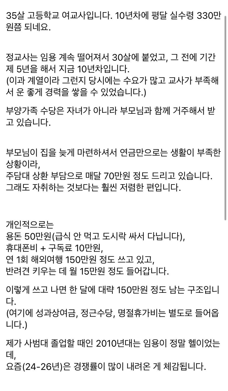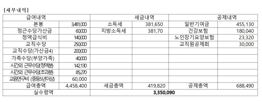 10년차 고등학교 여교사 월급 인증샷
