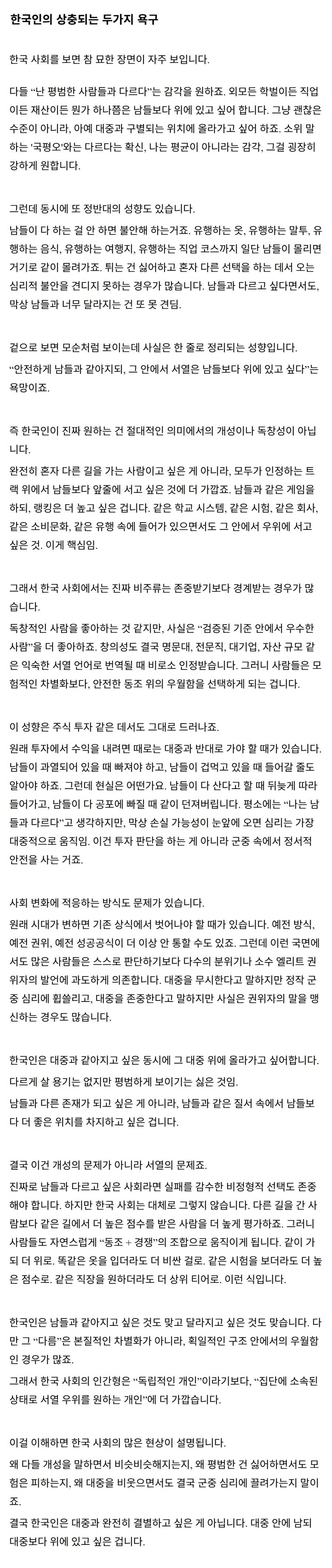 한국인의 상충되는 두가지 욕구