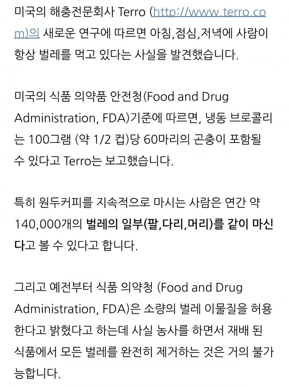 사람은 아침, 점심, 저녁에 항상 벌레를 먹고 있다는 사실