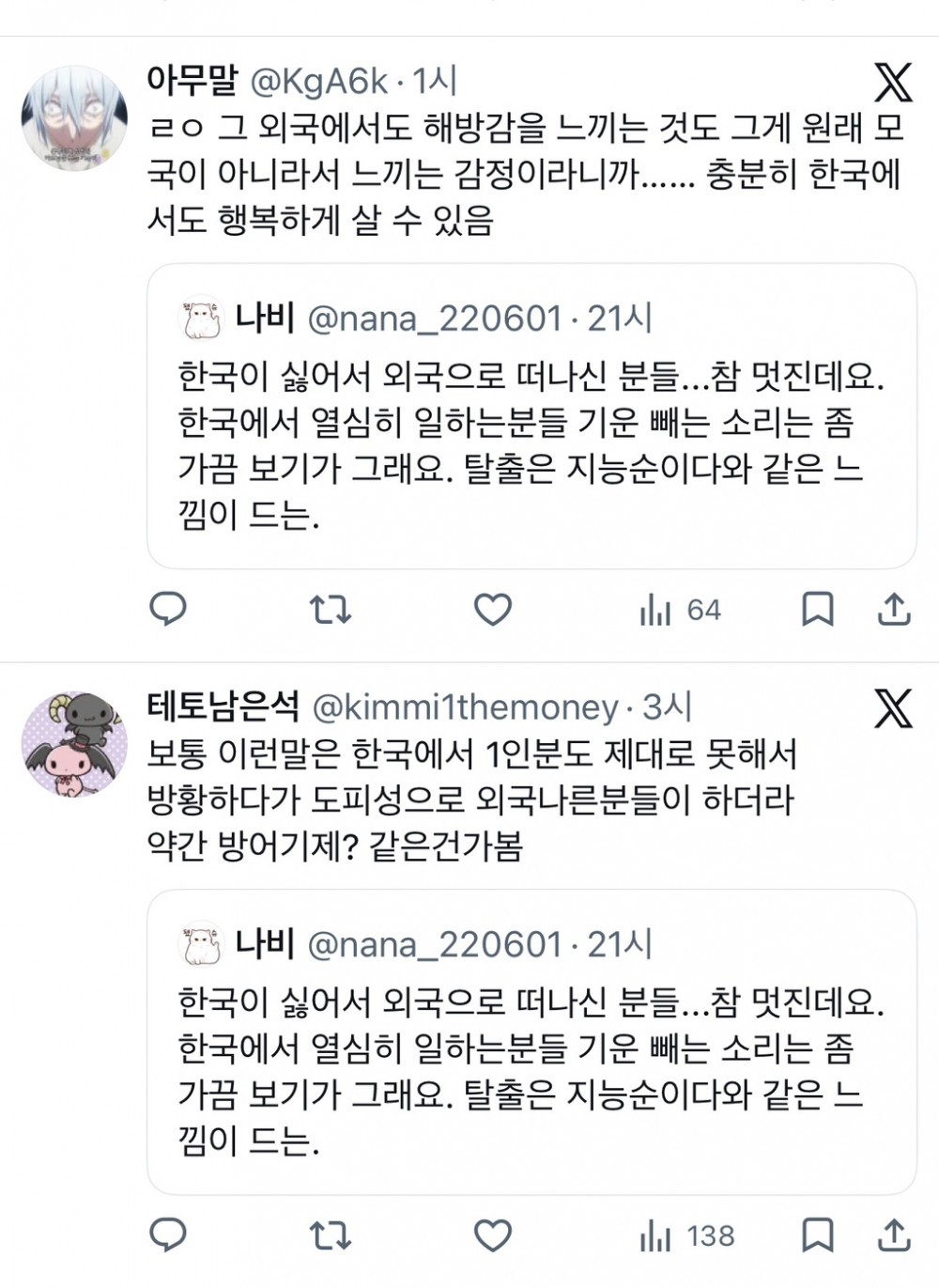 한국이 싫어서 외국으로 떠나 인간들한테 일침