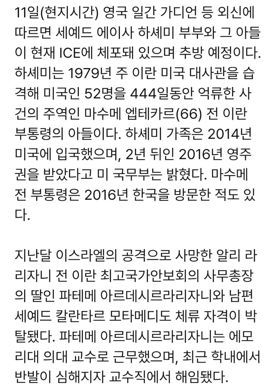 같은 나라 이란 혁수대 자녀들은?