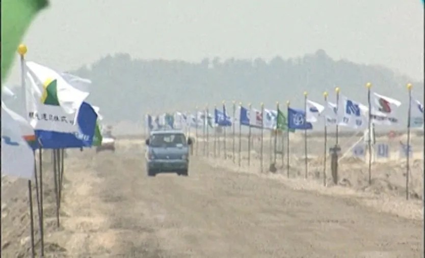 (건설에 참여한 건설사 깃발을 세운 후)
